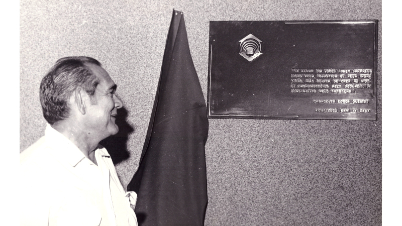 Edson Queiroz no dia 21 de março de 1973, durante a inauguração da Universidade de Fortaleza (Foto: Acervo da Unifor)