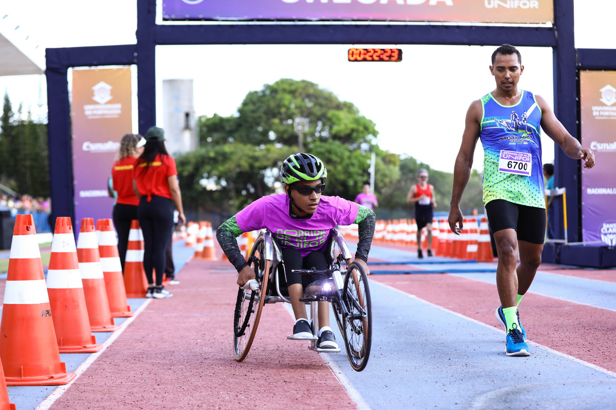 Reforçando a importância da inclusão no esporte, a competição destinada às pessoas com deficiência começou às 8h30. Crianças, adultos e familiares torceram entusiasmados ao longo do percurso de 800 metros, que incluiu trechos de ruas internas do Campus e da pista do Estádio de Atletismo da Unifor. As entidades com o maior número de participantes receberam prêmios.