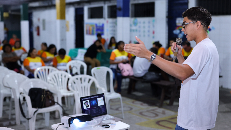 “É muito gratificante que a gente possa trazer essas informações e orientar como eles devem se comportar, o que são esses tipos de contrato, como funciona, o momento que começa, o momento que termina, de uma forma mais didática, de uma forma mais simples, para dar mais vontade de eles se inserirem no mercado de trabalho” - Ítalo Costa, discente do curso de Direito da Unifor