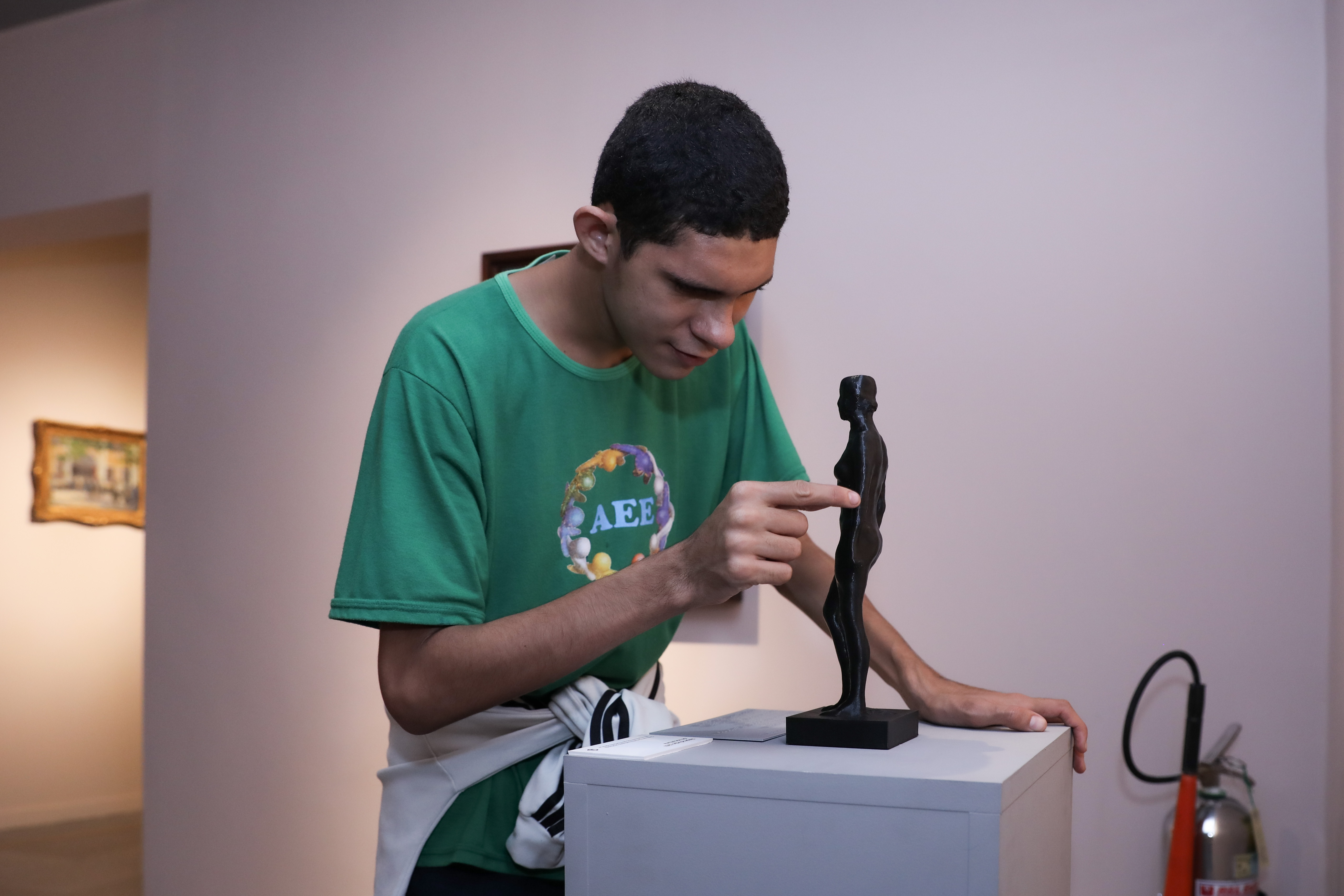A pesquisadora ressalta que exposições com acessibilidade permitem que as pessoas cegas ou com outras deficiências, não só conheçam a arte mas formem as suas próprias opiniões, e possam estudar sobre arte. “Arte, pessoal, também é para as pessoas cegas. Não é só porque a gente não enxerga que a gente não acessa a arte de outra maneira. Então essas iniciativas, como audiodescrição e peças táteis, são extremamente válidas e importantes”, explica Rebeca, que prestou consultoria para a exposição. Ela pôde apreciar, entre outras peças táteis, a que reproduz a escultura “Mulher em pé”, do escultor italiano Ernesto de Fiori (1937, bronze patinado).