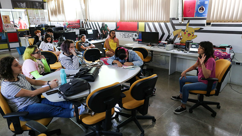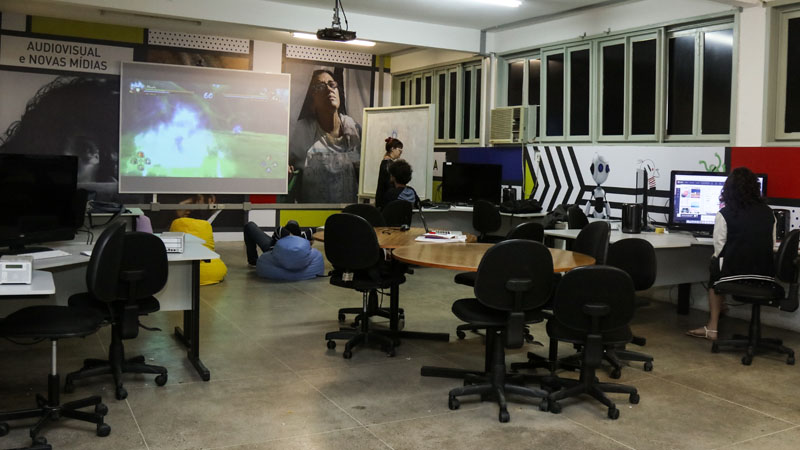 Além disso, você conta com salas de exibição, midiateca e equipamentos de ponta para desenvolver projetos em realidade virtual, animação, jogos e novas mídias. Aqui, você não só aprende com tecnologia avançada — você produz com ela.