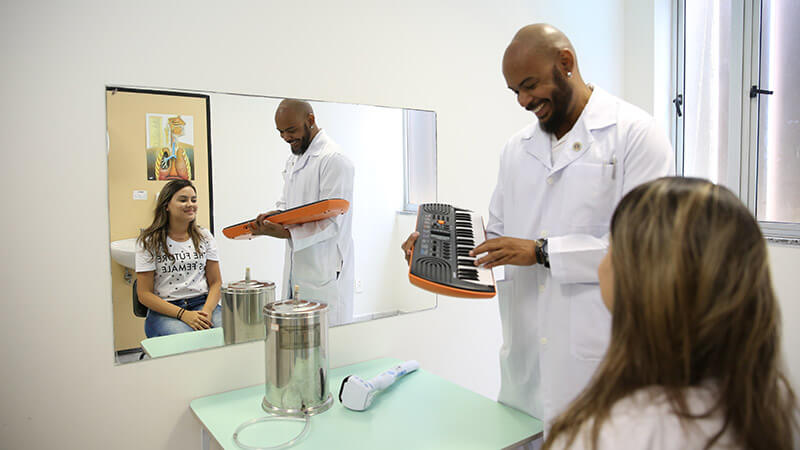 … a melhor formação em Fonoaudiologia de Fortaleza; e trabalhar com promoção da saúde, prevenção, avaliação, pesquisa, diagnóstico e tratamento nas diversas áreas, tais como: voz, linguagem oral e escrita, audição, motricidade orofacial, disfagia, fonoaudiologia educacional e saúde coletiva.