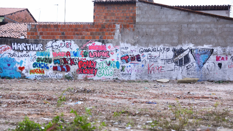 O terreno ainda encheu-se com horta, bancos e balanços feitos de pneus, além dos desenhos, que ganharam forma no muro então pichado. Segundo Karla Patrícia, a comunidade passou dias reunindo materiais recicláveis para ressignificar o local. A Unifor custeou tintas, diárias dos artistas, materiais de construção, entre outros.