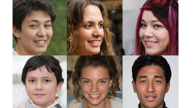 This Person Does Not Exist ("Esta pessoa não existe", em português) é um site que apresenta imagens geradas por computador de rostos humanos fictícios usando uma Rede Geradora Adversária (GAN, sigla em inglês) (Imagens: GAN/StyleGAN2)