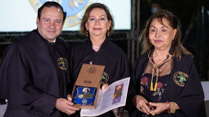 A fim de homenagear seis mulheres com cargos de comando e liderança no Ceará, seja na atividade pública, seja na atividade privada, a Academia Cearense de Literatura e Jornalismo (ACLJ) outorgou, na quarta-feira (20), a Medalha Rachel de Queiroz. Entre as homenageadas se destacam a chefe do Executivo estadual, Izolda Cela, a presidente da Fundação Edson Queiroz, Lenise Queiroz Rocha, a reitora da Universidade de Fortaleza (Unifor), professora Fátima Veras, além da presidente do Tribunal de Justiça do Ceará, desembargadora Nailde Pinheiro Nogueira, e as empresárias Consuelo Dias Branco e Ana Maria Studart. O evento aconteceu no Terraço da Cultura José Teles do Ideal Clube.