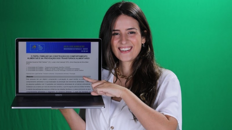 Qual o papel da família na construção do comportamento alimentar e na prevenção dos transtornos alimentares? Guiada por essa pergunta, a estudante do 8º semestre do curso de Psicologia da Universidade de Fortaleza, da Fundação Edson Queiroz, Amanda Petri, 24, produziu e pôs à prova, em meio aos Encontros Científicos e à programação do Mundo Unifor 2021, o seu primeiro artigo acadêmico. A escolha do tema para uma das mais desafiadoras experiências vividas ao longo de qualquer graduação nasce atrelada à própria biografia.