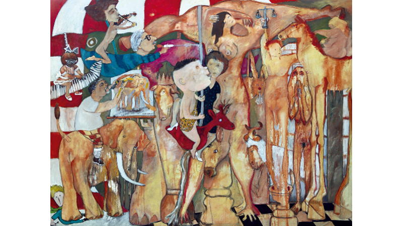 Obra símbolo da exposição: Fabricando Elefantes Todos os Dias, 2016, acrílica sobre tela (Foto: Divulgação)