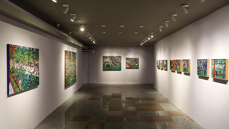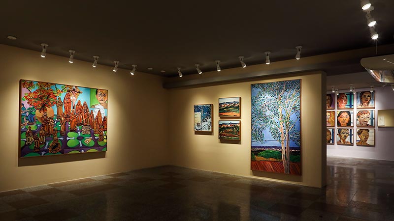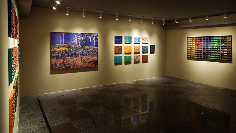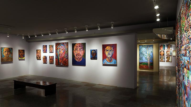 A exposição reúne um conjunto de 91 obras que abarca diferentes momentos de sua produção artística, das primeiras pinturas figurativas, de caráter social, às grandes telas com densas tramas, tão comuns em seus últimos anos.