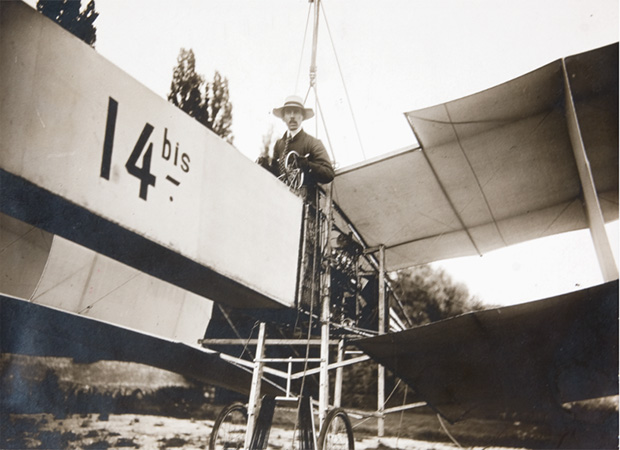 Nos livros escolares, ele é um herói nacional. Inventor do aparelho aéreo mais pesado que o ar, primeiro a alçar voo sem a necessidade de rampa para lançamento. Nas “fotos oficiais”, um homem sisudo, de colarinho alto e chapéu panamá amassado.