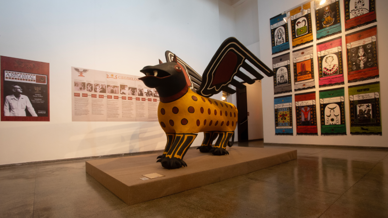 Organizada em núcleos, cada um definido por um tratamento expográfico exclusivo, a exposição Armorial 50 traz à tona a diversidade, as tradições e as mais representativas raízes da cultura popular nordestina, tal qual idealizado por Ariano Suassuna.