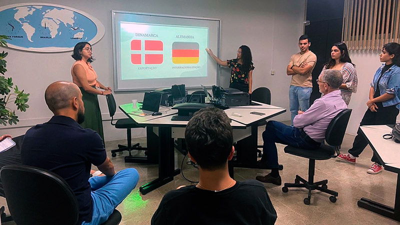 - Os alunos são divididos em grupos que desenvolvem cada qual a elaboração do plano de internacionalização especificamente a uma empresa.